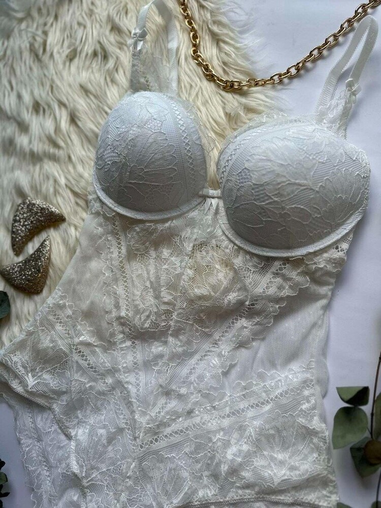 Мережевний боді на кісточці ,на поролоні ,бретелі знімаються, спинка мереживна Виробник: Porloma Китай чашка С/80