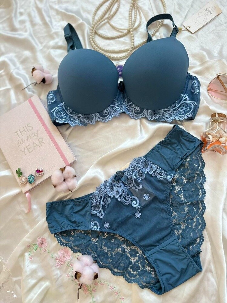 Мережевний бюстгальтер на поролоні Бретель – знімна, спина – мереживо. Застібка 2 гачки на 4 позиції. Трусики на середній посадці. Чашка Д/100