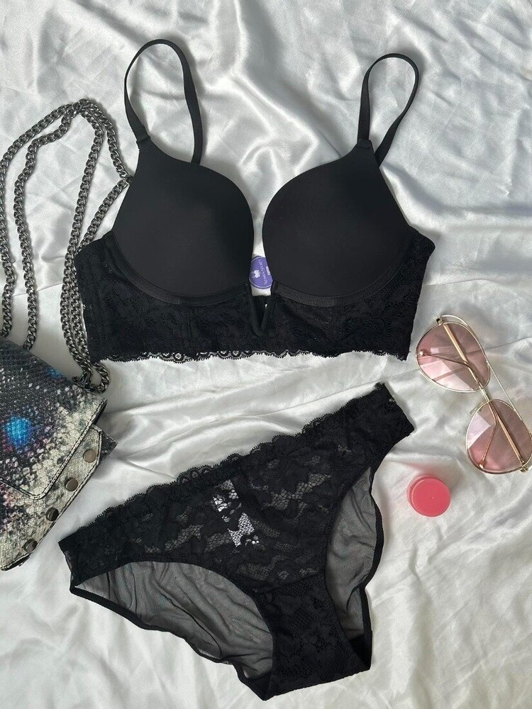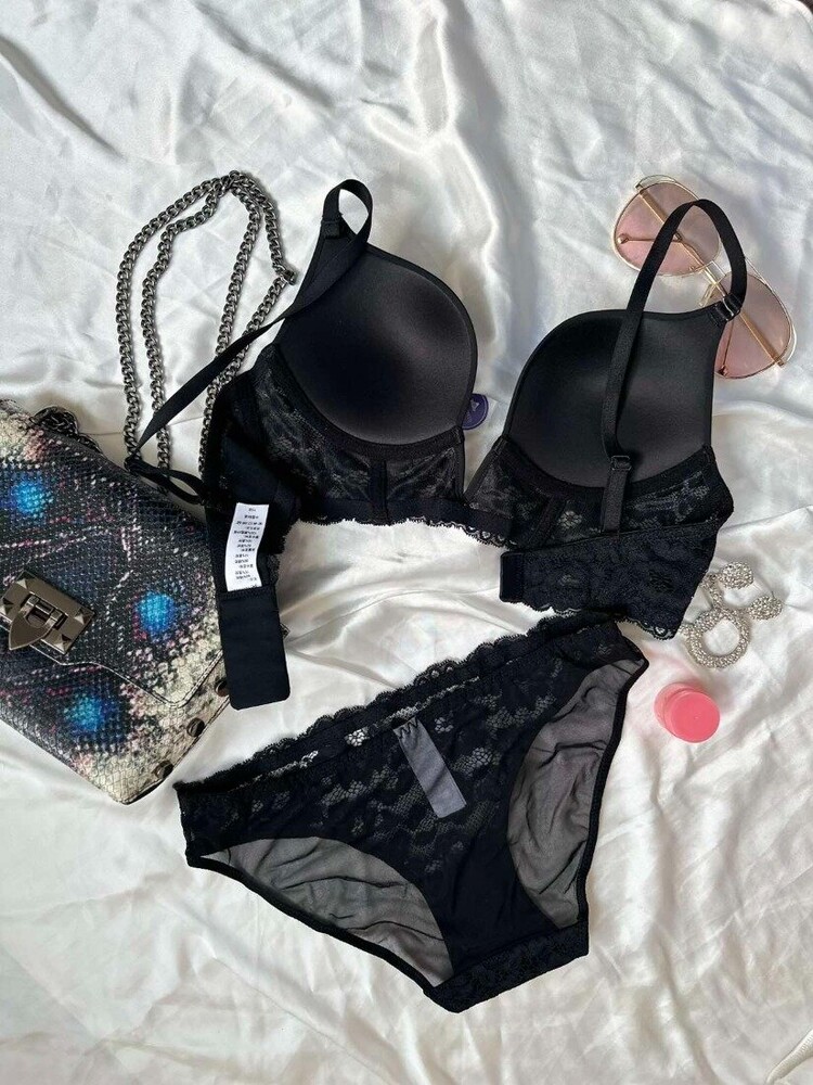 Гладкий бюстьє з мереживною вставкою на поролоні. Бретель – знімна, спина – ажурна. Застібка 2 гачки на 4 позиції. Трусики на середній посадці.