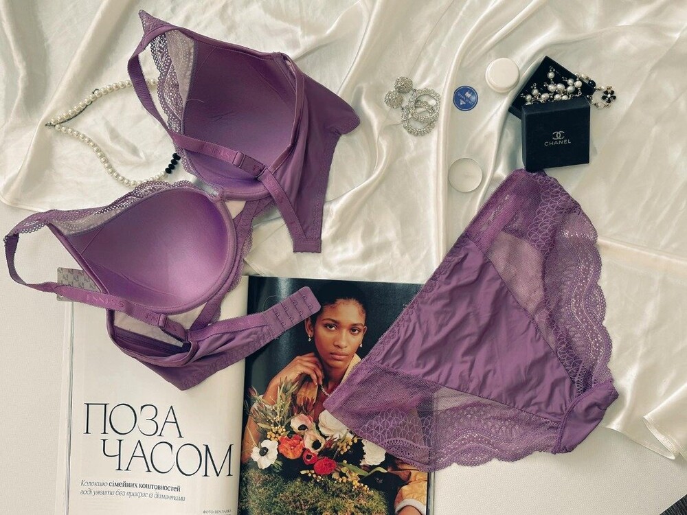Мережевний бюст на поролоні. Бретель – знімна, спина – гладкий. Трусики на середній посадці.