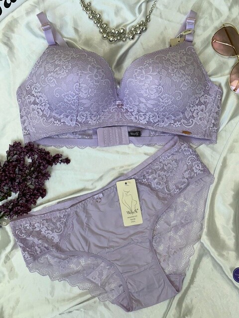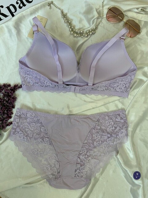 Ажурний бюстгальтер без кісточок на поролоні Бретель - знімна, регулюється, спина мереживна, застібка 3 гачки на 4 позиції. Трусики на середній посадці. Чашка Д 100 Виробник Weiyesi 460₴1