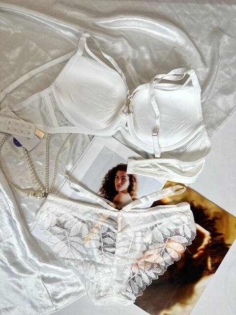 Мережевий бюстгальтер на пуш-апі. Бретель – незнімна, спина – гладка. Застібка 2 гачки на 4 позиції. Трусики на середній посадці.