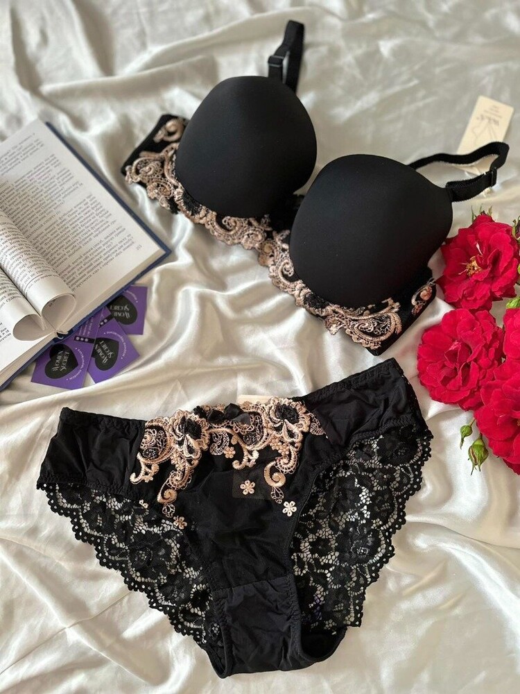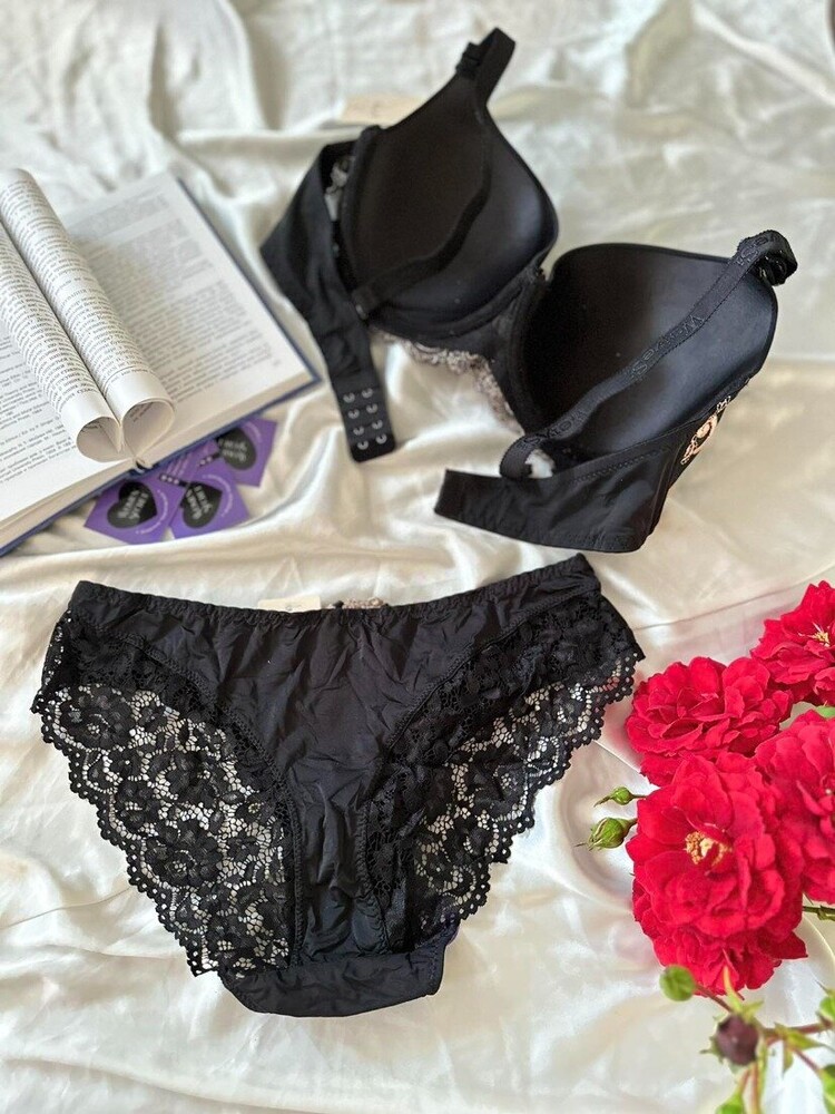 Мереживний бюстгальтер на поролоні Бретель – знімна, спина – ажурна. Застібка 2 гачки на 4 позиції. Трусики на середній посадці.