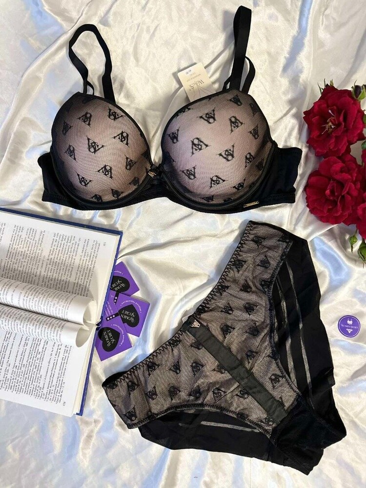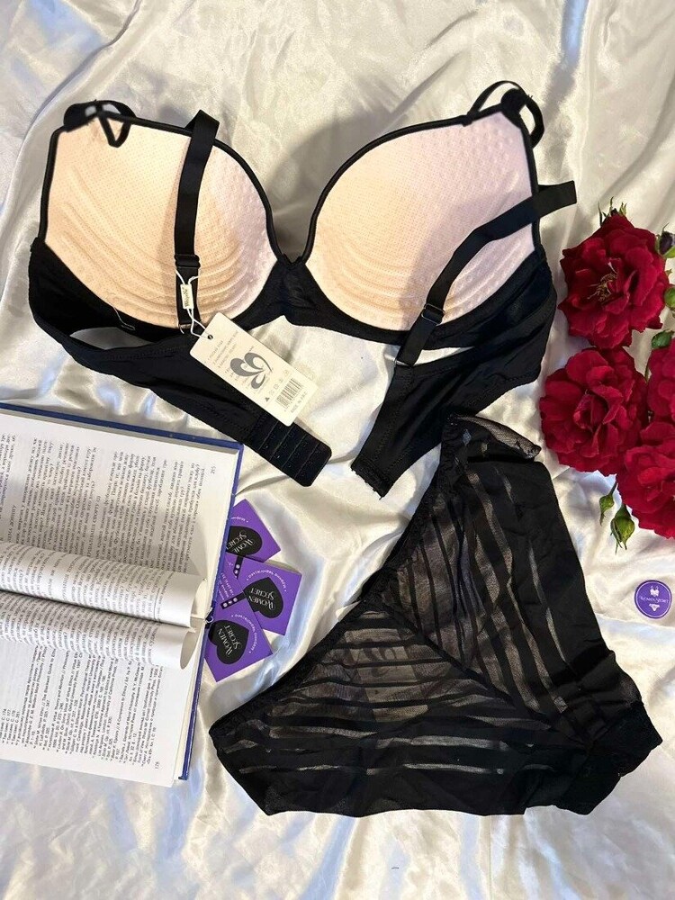 Мереживний бюстгальтер на тонкому поролоні. Бретель – незнімна, регулюється, спина – сітка. Застібка 2 гачки на 4 позиції. Трусики на середній посадці.