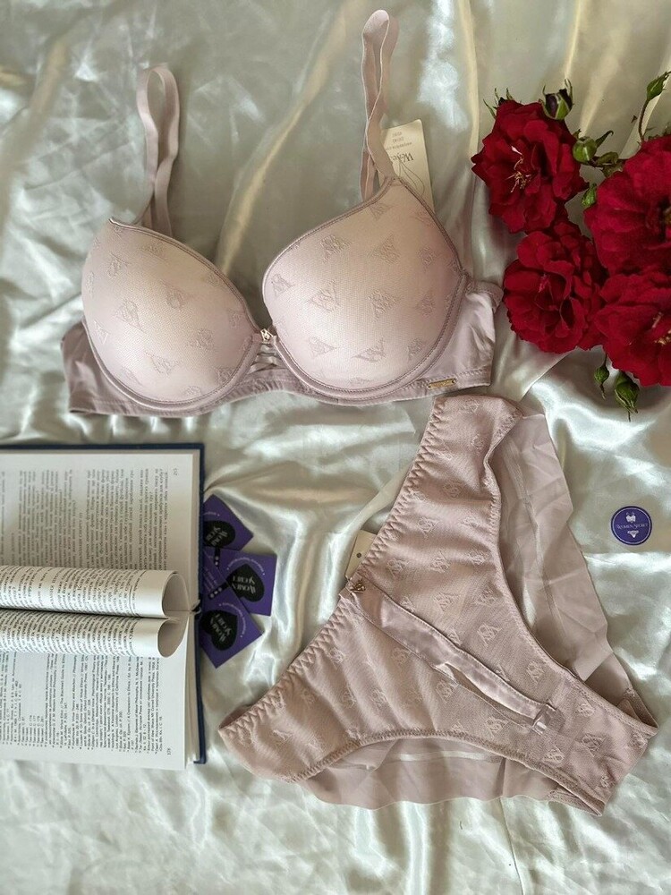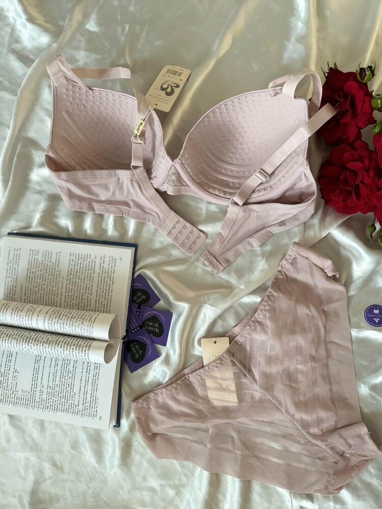 Мереживний бюстгальтер на тонкому поролоні. Бретель – незнімна, регулюється, спина – сітка. Застібка 2 гачки на 4 позиції. Трусики на середній посадці.