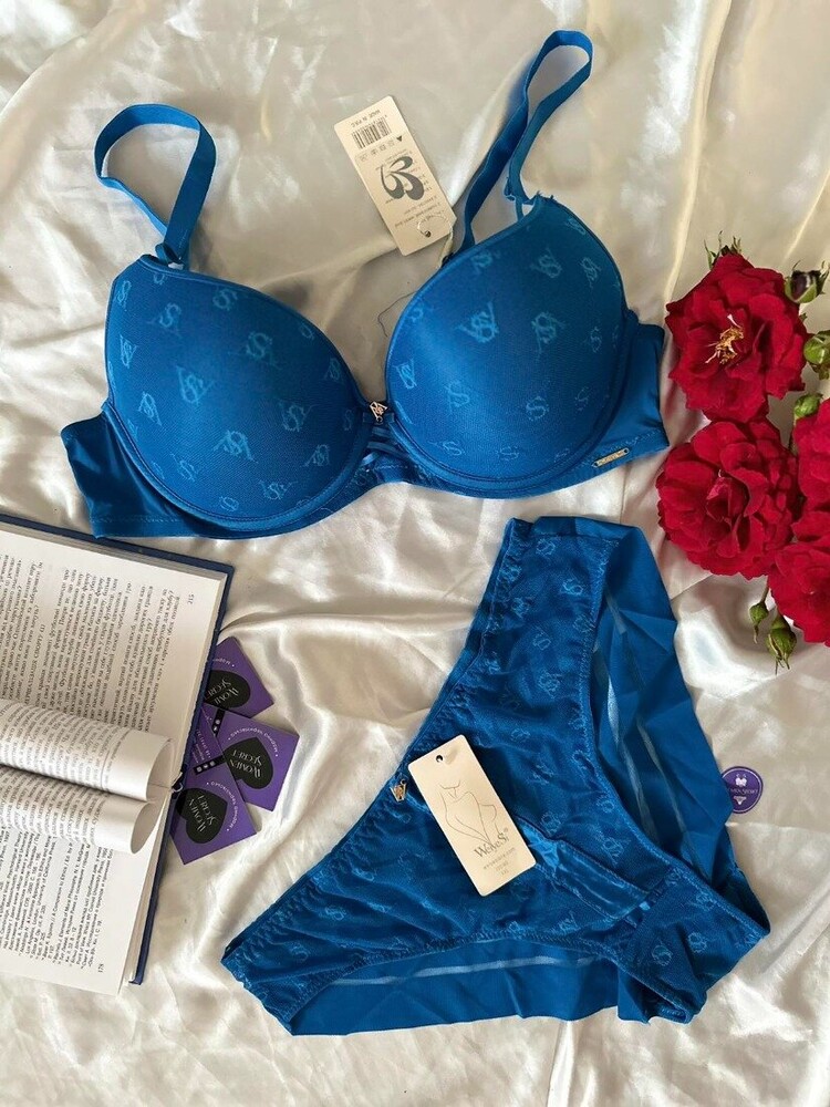 Мереживний бюстгальтер на тонкому поролоні. Бретель – незнімна, регулюється, спина – сітка. Застібка 2 гачки на 4 позиції. Трусики на середній посадці.